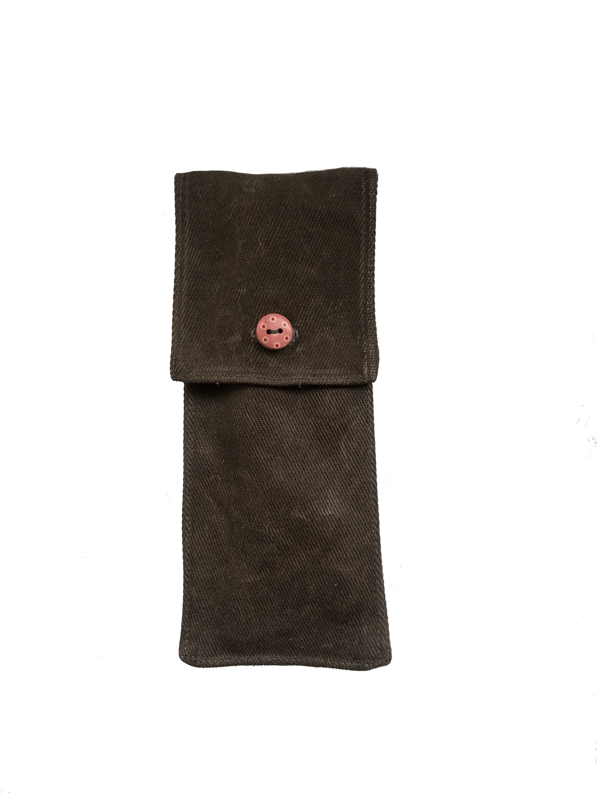 A simple pouch, done in a heavy weight waxed 100% cotton canvas, with a painted wooden button closure, for storing your pruners .