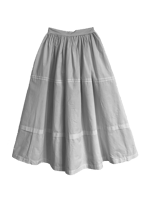 A whimsical and versatile petticoat inspired skirt. Features a drawstring at the back waist for full adjustability while maintaining a smooth waistband in front. The skirt is voluminous and has decorative pin tucks.